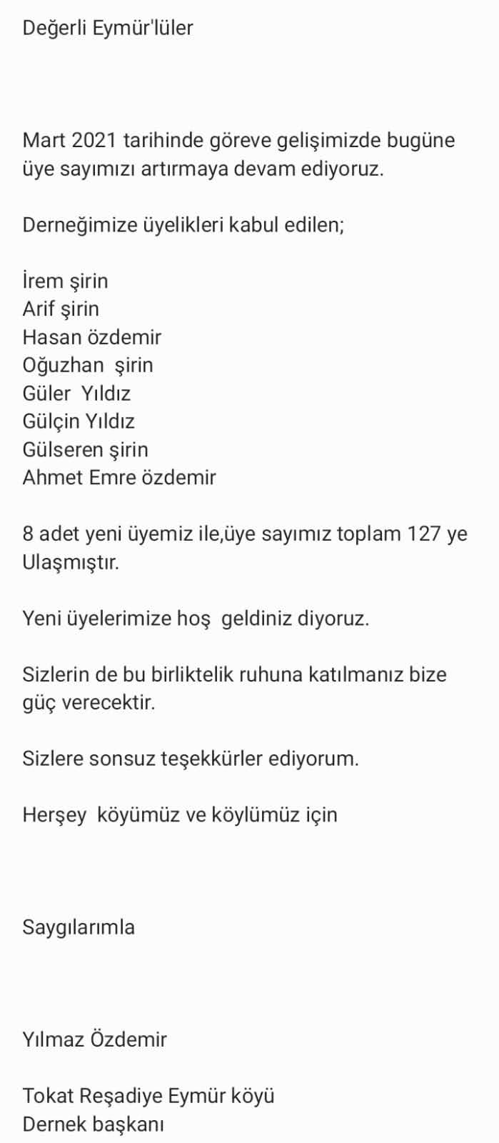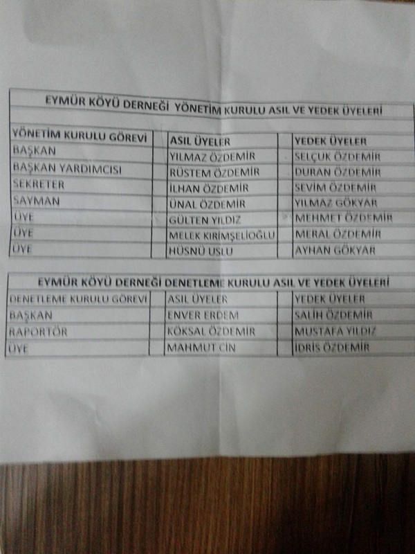 EYMÜR KÖYÜ DERNEK YÖNETİM KURULU