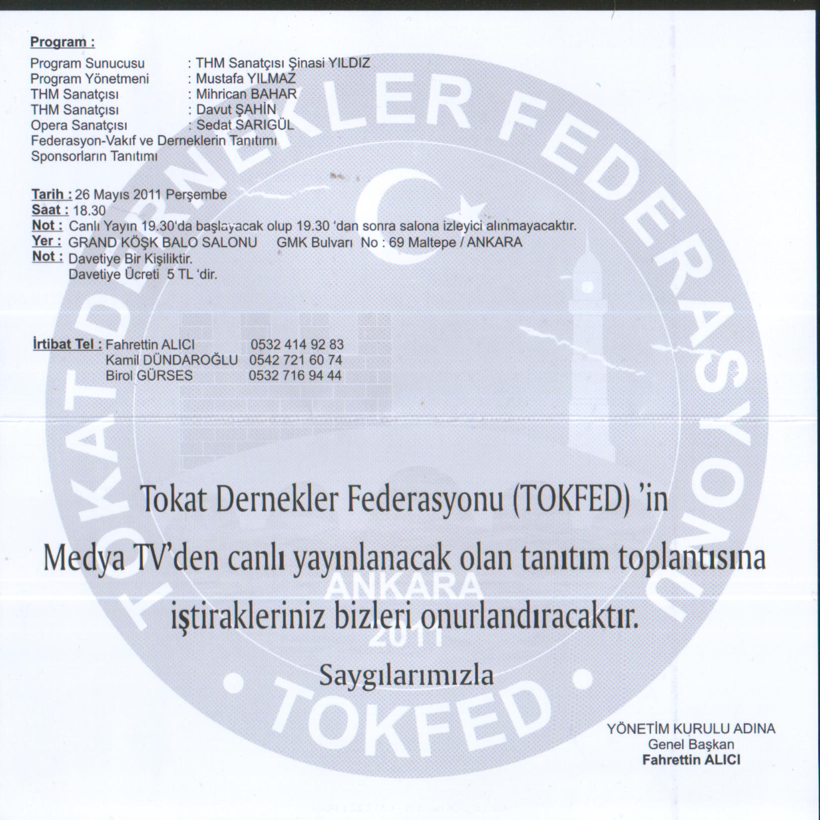 TOKFED TOKAT DERNEKLERİ FEDARASYON U ANKARA
